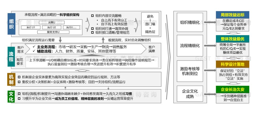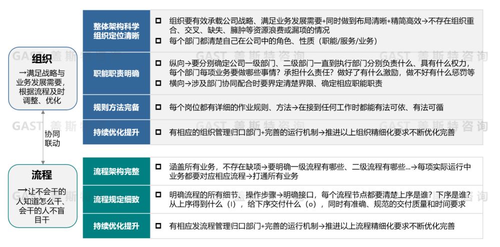 企業(yè)組織承載流程,流程需要以精細(xì)化組織為基礎(chǔ),兩者要協(xié)同考慮并確定精細(xì)化要求。