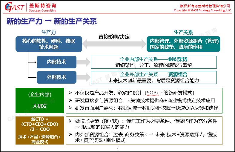 新生產(chǎn)力與新生產(chǎn)關系:產(chǎn)業(yè)變革誕生了新的生產(chǎn)力(軟件、硬件等新的數(shù)據(jù)處理手段),現(xiàn)有生產(chǎn)關系無法滿足新生產(chǎn)力的需要,必須進行生產(chǎn)關系的創(chuàng)新。新生產(chǎn)關系既包括企業(yè)內部組織架構、分工、流程的調整與重塑,也包括企業(yè)外部商業(yè)模式、產(chǎn)業(yè)分工等。未來,技術創(chuàng)新最重要,考驗的是企業(yè)背后的內外部資源組合能力。