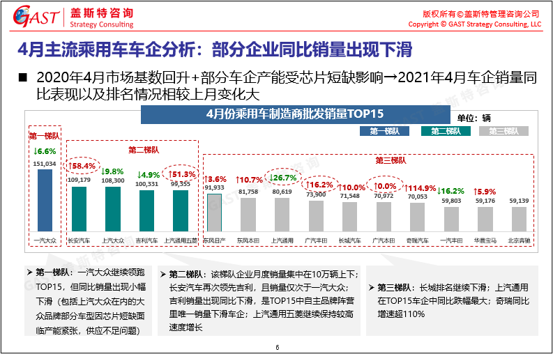 4月主流乘用車(chē)車(chē)企分析:長(zhǎng)安汽車(chē)躍升至第二,銷(xiāo)量?jī)H次于一汽大眾。吉利銷(xiāo)量出現(xiàn)同比下滑,是TOP15中自主品牌陣營(yíng)里唯一銷(xiāo)量下滑車(chē)企。