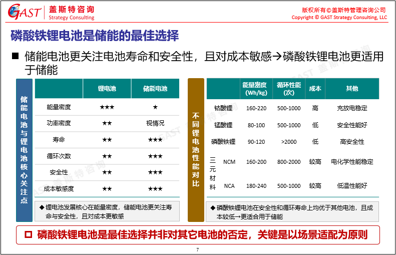 儲能電池需求分析:磷酸鐵鋰電池在安全性和循環(huán)壽命上均優(yōu)于其他電池,且成本較低,更適用于儲能。磷酸鐵鋰電池是最佳選擇并非對其它電池的否定,關(guān)鍵是以場景適配為原則。