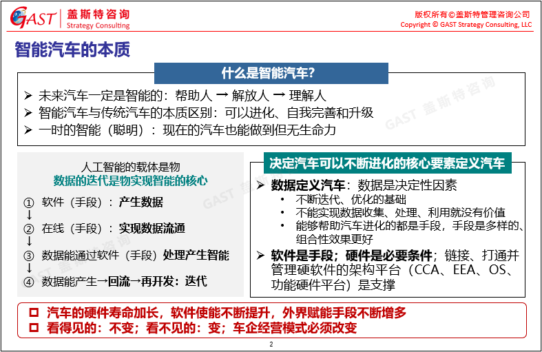 智能汽車的本質(zhì):未來汽車一定是智能的,逐步實現(xiàn)幫助人、解放人、理解人。而智能汽車與傳統(tǒng)汽車的本質(zhì)區(qū)別在于智能汽車可以進化、自我完善和升級。