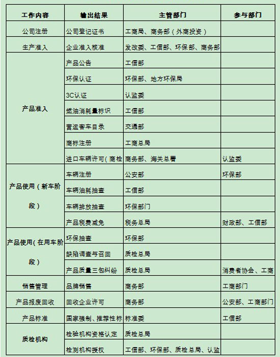 目前汽車產(chǎn)業(yè)多頭管理、政出多門的問題非常嚴(yán)重,很多部門都掌握著對汽車產(chǎn)業(yè)的行政管理權(quán),詳見下表: