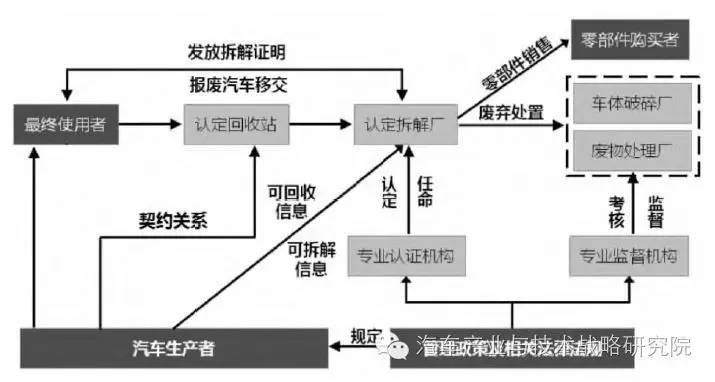 信息貫穿著汽車產(chǎn)品的整個生命周期過程,對于報廢回收環(huán)節(jié)尤為重要,只有完整的信息才能有效保證廢車不流入黑市。因此在管理方式上,應(yīng)加強事前、事中、事后3個環(huán)節(jié)的協(xié)同監(jiān)管機制,嚴格登記整車、各級零部件以及各種材料的標識信息,保證整個供應(yīng)鏈體系的信息、車輛的流通信息再到報廢拆解信息都不丟失,以防止報廢汽車流向非法渠道,同時保證整個生命周期各階段的各類標識信息暢通傳播、嚴格管理。