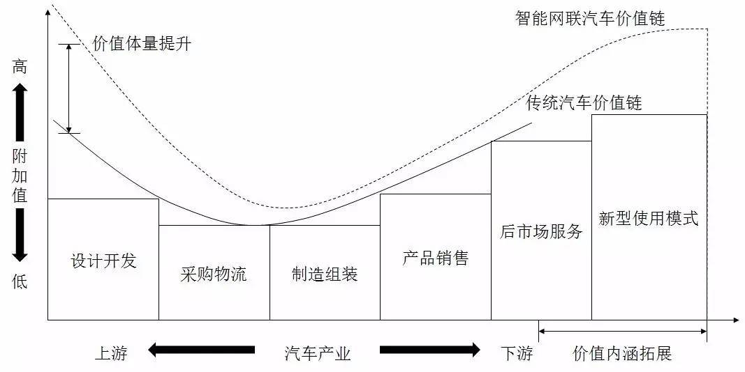 智能網(wǎng)聯(lián)汽車改變了傳統(tǒng)汽車的產(chǎn)品形態(tài)和服務(wù)模式,將使汽車產(chǎn)業(yè)價(jià)值鏈上各環(huán)節(jié)的價(jià)值創(chuàng)造活動(dòng)產(chǎn)生深刻變革。