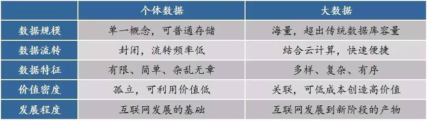 ▲表1 個(gè)體數(shù)據(jù)與大數(shù)據(jù)