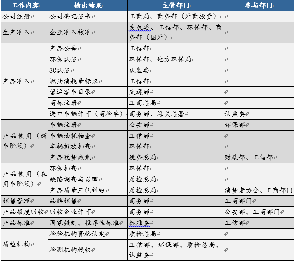 表1.2 與汽車產(chǎn)業(yè)相關(guān)的行政管理權(quán)限及其歸屬