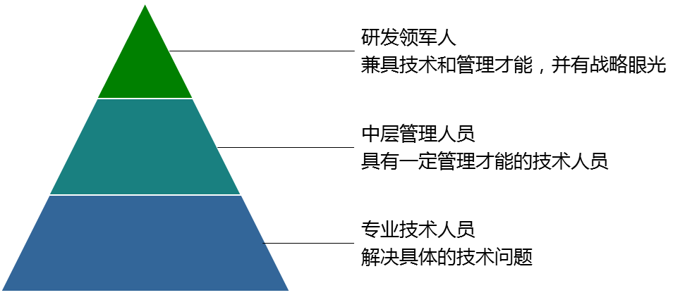 那么海歸在自主研發(fā)中到底應該扮演什么角色呢?我認為,理想狀態(tài)下企業(yè)應該有一個金字塔式結構的研發(fā)團隊:如圖4.1所示,有在塔尖上指揮全軍的領軍人,他應該兼具技術和管理才能,并且有戰(zhàn)略眼光;有一批具備一定管理才能的技術人員,作為中間骨干力量;最后還要有大量的專業(yè)技術人員,能夠解決各個領域的具體技術問題。企業(yè)把海歸放在哪個位置,就決定了他能做什么事。所謂“在其位謀其政”,企業(yè)要清楚自己需要的角色,海歸也要明白自己擔任的是什么角色。