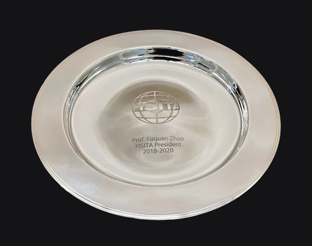 今天我館迎來了一件重要的藏品,它就是清華大學汽車產(chǎn)業(yè)與技術(shù)戰(zhàn)略研究院趙福全院長榮獲的FISITA主席獎盤!本獎盤是FISITA在主席卸任儀式上頒發(fā)給趙福全教授的,以獎勵和見證趙福全教授擔任主席期間做出的特殊貢獻。趙福全院長自愿無償將FISITA獎盤捐贈于我館,這不僅對于歷史收藏、傳播汽車文化有著重要意義,更是中國汽車工業(yè)發(fā)展的重要見證之一。
