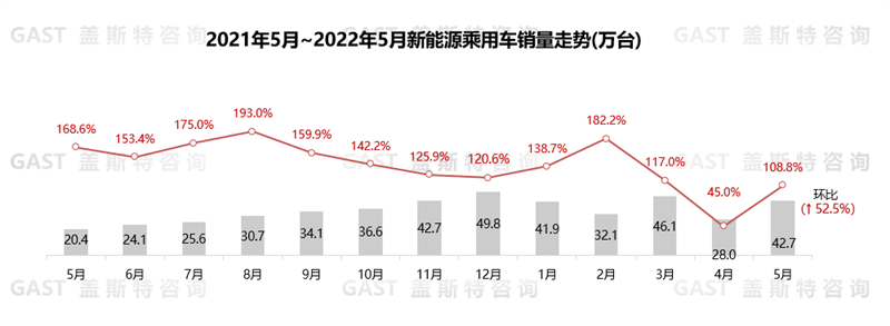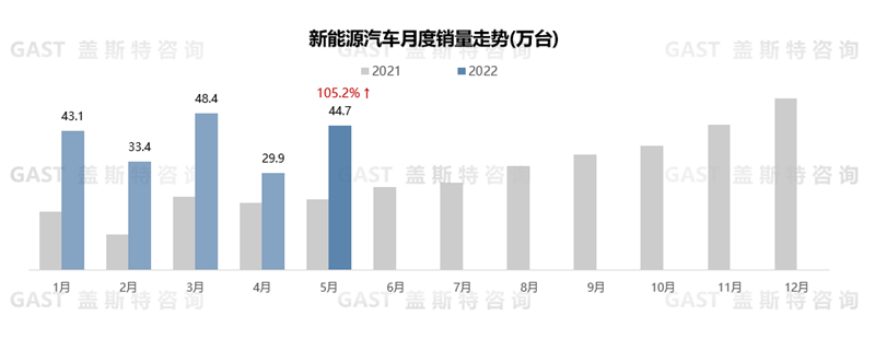 5月,新能源汽車(chē)銷(xiāo)售44.7萬(wàn)臺(tái),同比增長(zhǎng)105.2%,環(huán)比增長(zhǎng)49.6%,延續(xù)高速增長(zhǎng)態(tài)勢(shì)。新能源滲透率保持高位,整體汽車(chē)市場(chǎng)滲透率達(dá)24.0%。隨著疫情形勢(shì)出現(xiàn)好轉(zhuǎn),以及促消費(fèi)政策逐步落實(shí),新能源汽車(chē)有望繼續(xù)保持高增長(zhǎng)。
