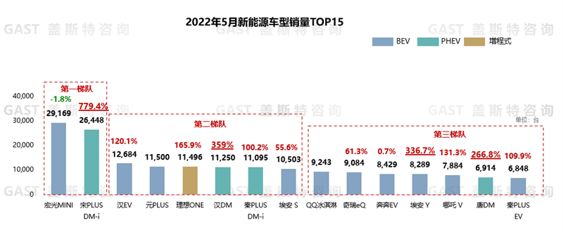 相比上月排名變動(dòng)明顯的是:理想ONE(上升10名)、埃安S(進(jìn)入TOP15榜單)。漲幅超過(guò)200%的有4款車(chē)型:3款比亞迪PHEV(宋漢唐)和1款埃安BEV(Aion Y)。理想ONE逐步擺脫上月疫情導(dǎo)致的供應(yīng)鏈影響,釋放積累訂單,本月銷(xiāo)量位居新勢(shì)力車(chē)型第一。埃安S單月銷(xiāo)量突破萬(wàn)臺(tái),創(chuàng)該車(chē)型歷史最高紀(jì)錄。