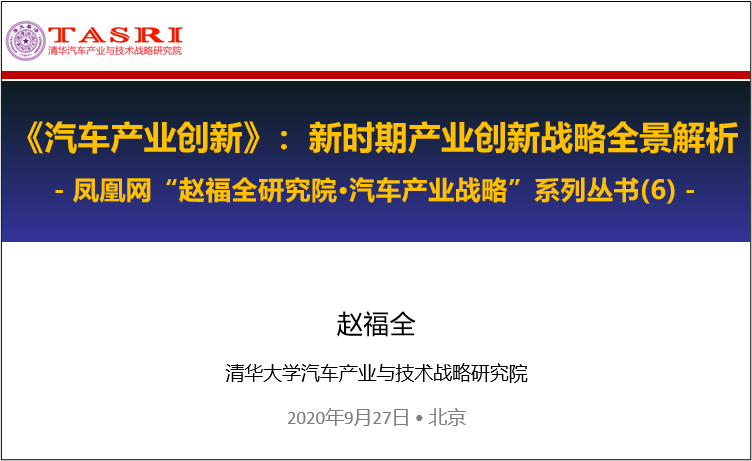 2020年09月27日,“趙福全研究院·汽車產(chǎn)業(yè)戰(zhàn)略系列叢書”的第六冊《汽車產(chǎn)業(yè)創(chuàng)新》新書發(fā)布會在北京鳳凰國際傳媒中心隆重召開,以下是關(guān)于這本新書的介紹: