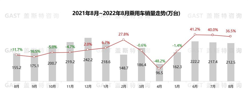 8月,總體汽車市場(chǎng)延續(xù)增長(zhǎng)態(tài)勢(shì)。其中,乘用車同比增長(zhǎng)36.5%,購(gòu)置稅優(yōu)惠效果持續(xù)顯現(xiàn)。商用車同比增長(zhǎng)4%,自去年4月以來(lái)首次實(shí)現(xiàn)同比增長(zhǎng)。