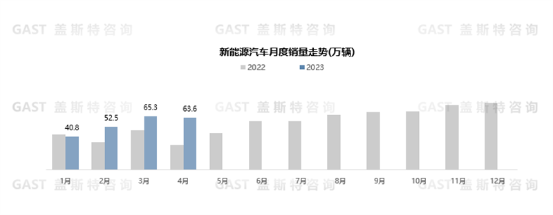 4月,新能源汽車共銷售63.6萬輛,環(huán)比下降2.6%,全市場滲透率達29.5%。前四月新能源單月滲透率逐步提高,對燃油車替代效應持續(xù)加強。