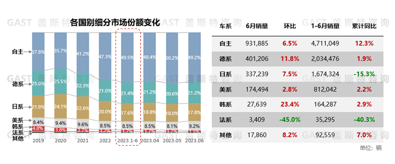 上半年車市特征二:自主品牌乘用車市場份額占比近半