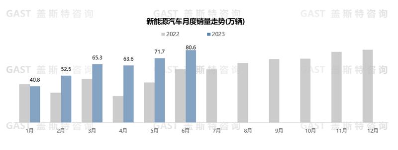 6月,新能源汽車共銷售80.6萬輛,同比增長35.2%,環(huán)比增長12.4%;上半年累計銷售374.5萬輛,同比增長44.1%。從滲透率來看,上半年全市場NEV滲透率達28.3%,乘用車市場滲透率達到31.4%。