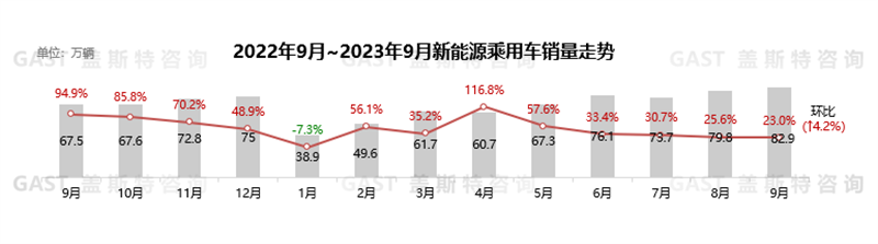 9月,乘用車市場(chǎng)銷售248.7萬輛,同比增長(zhǎng)6.6%,環(huán)比增長(zhǎng)9.4%,單月銷量處于同期歷史高位。政策方面,工信部等七部門印發(fā)汽車行業(yè)穩(wěn)增長(zhǎng)工作方案,支持?jǐn)U大NEV消費(fèi)并鼓勵(lì)汽車限購(gòu)地區(qū)增加購(gòu)車指標(biāo)。供給方面,9月主動(dòng)調(diào)整價(jià)格體系的車企增多,促銷力度較8月進(jìn)一步加大;另外,秋季企業(yè)新品集中上市,產(chǎn)品供給豐富。因此,在整體促銷政策推動(dòng)和新品帶動(dòng)下,“金九銀十”效應(yīng)顯現(xiàn)。