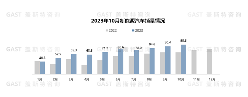 10月,新能源汽車共銷售95.6萬輛,同比增長(zhǎng)33.5%,環(huán)比增長(zhǎng)5.8%。1-10月累計(jì)銷售728萬輛,同比增長(zhǎng)37.5%。10月新能源市場(chǎng)延續(xù)9月旺季表現(xiàn),銷量實(shí)現(xiàn)同環(huán)比雙增長(zhǎng)。從滲透率角度看,10月全市場(chǎng)滲透率為33.5%,乘用車市場(chǎng)滲透率為36.6%,較上月均有較大幅度回升,且均創(chuàng)造歷史新高值。
