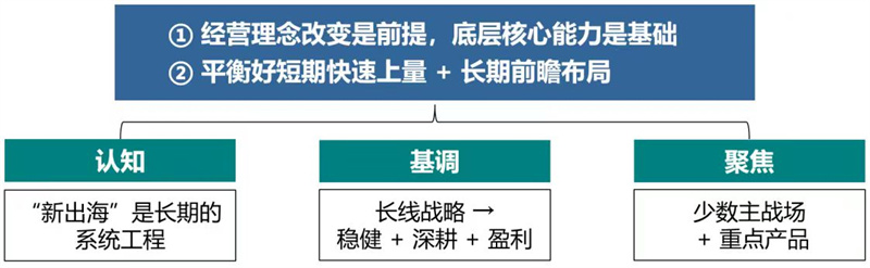 “新打法”的兩條基本原則之一:改變經(jīng)營理念是前提,底層核心能力是基礎(chǔ)。企業(yè)首先要認識到,“新出海”盡管困難重重,但卻是新階段實現(xiàn)更大更好發(fā)展的必由之路,為此必須著眼于擴展國際市場、利用海外資源、提升綜合實力和做強自身品牌來全力嘗試和推進,切不可囿于固守本土市場的舊理念而裹足不前;同時,底層核心能力始終是“新出?!钡幕A(chǔ),那些在國內(nèi)市場都沒有形成優(yōu)勢和特色的企業(yè),寄希望在“新出海”方面“僥幸”成功是不可能的。