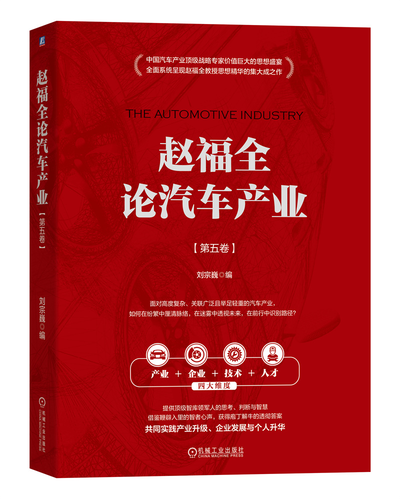 近日,《趙福全論汽車產(chǎn)業(yè)》第五卷由機械工業(yè)出版社正式出版發(fā)行。這是囊括趙福全教授最新的思考、判斷和建議的系統(tǒng)集錦,更是“趙福全論汽車產(chǎn)業(yè)系列叢書”繼去年第四卷之后,再一次為行業(yè)奉獻的戰(zhàn)略價值巨大的思想盛宴。