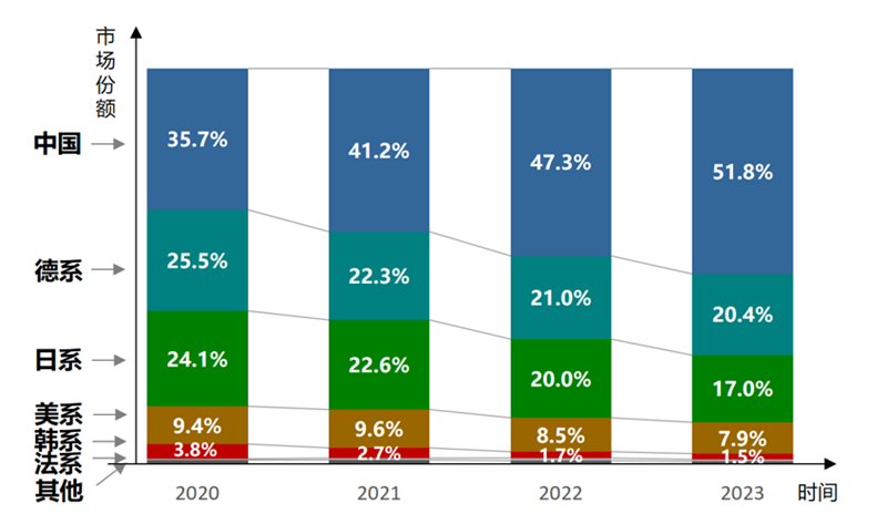 當(dāng)前中國車企在國內(nèi)乘用車市場的占有率屢創(chuàng)新高,已經(jīng)超過半壁江山,且仍在節(jié)節(jié)攀升。與此相對應(yīng)的是,外資車企的市場份額不斷萎縮,部分車企的銷量甚至出現(xiàn)斷崖式下跌。那么,此前一直處于弱勢地位的中國品牌為什么能夠?qū)崿F(xiàn)強勢增長?而長期主導(dǎo)中國汽車市場的外資品牌又為什么會遭遇困境呢?筆者將在本文中對該問題進(jìn)行系統(tǒng)分析和深入解讀,并基于此梳理識別汽車企業(yè)在本輪產(chǎn)業(yè)變革中有效搶占新賽道的方法、策略及關(guān)鍵舉措,進(jìn)而為相關(guān)車企提出發(fā)展建議。