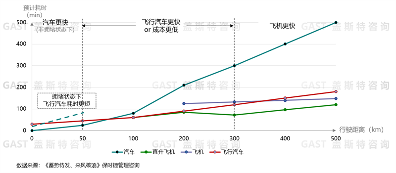 圖3飛行汽車與現(xiàn)有主流通行工具的出行效率對(duì)比