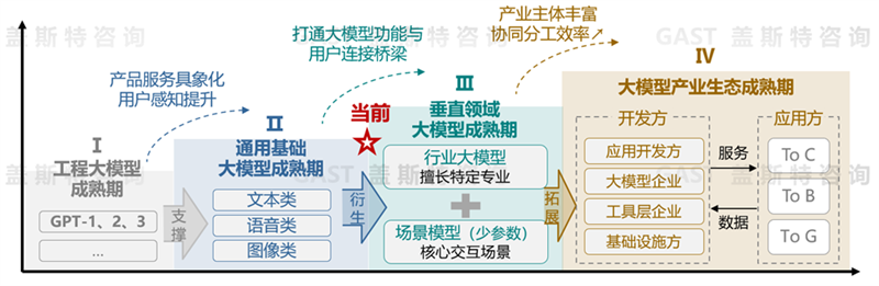 當(dāng)前通用大模型領(lǐng)域呈現(xiàn)出百花齊放、激烈競(jìng)爭(zhēng)的場(chǎng)面。蓋斯特咨詢判斷,將來(lái)僅有少數(shù)寡頭企業(yè)可完全跑通大模型的演進(jìn)路徑。隨著大模型行業(yè)競(jìng)爭(zhēng)從比參數(shù)過(guò)渡到比落地應(yīng)用,將出現(xiàn)越來(lái)越多的垂直領(lǐng)域大模型。這類行業(yè)大模型擅長(zhǎng)特定的專業(yè)領(lǐng)域及核心的交互場(chǎng)景。相對(duì)來(lái)說(shuō),輕量化的行業(yè)模型及場(chǎng)景模型得益于更聚焦的數(shù)據(jù)訓(xùn)練與更少的參數(shù)設(shè)置,不僅降低部署成本,同時(shí)用戶對(duì)此的感知程度也將日益加深,因此垂直應(yīng)用領(lǐng)域大模型將迎來(lái)蓬勃發(fā)展時(shí)期。未來(lái)隨著大模型產(chǎn)業(yè)主體更加豐富、各模塊專業(yè)性提升、產(chǎn)業(yè)鏈完善、應(yīng)用生態(tài)繁榮,大模型產(chǎn)業(yè)日趨完善的生態(tài)格局將有效賦能其實(shí)現(xiàn)更大的產(chǎn)業(yè)價(jià)值。