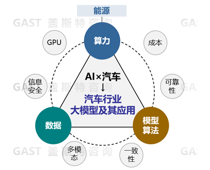 第一,在算法層面,由于汽車場(chǎng)景多且復(fù)雜,包括靜態(tài)和動(dòng)態(tài)、用戶和機(jī)器、車內(nèi)和車外、圖片和視頻等等,眾多類型的海量數(shù)據(jù)交織,顯然僅靠單一模態(tài)模型處理無(wú)法完成,因此對(duì)大模型同時(shí)處理不同模態(tài)數(shù)據(jù)的算法能力提出挑戰(zhàn);同時(shí)汽車關(guān)乎人類生命安全,車規(guī)級(jí)安全性要求大模型的算法必須具有高度的可靠性和一致性,另外還需具備可解釋性。而現(xiàn)有大模型生成的內(nèi)容極度不穩(wěn)定,若出現(xiàn)錯(cuò)誤又難以有效溯源,無(wú)法滿足車輛需求。蓋斯特咨詢認(rèn)為,相比于通用基礎(chǔ)大模型而言,汽車AI模型開(kāi)發(fā)應(yīng)聚焦在細(xì)分用車場(chǎng)景和數(shù)據(jù)輕量化,打造更符合汽車場(chǎng)景的的汽車AI中模型或小模型,或許能夠有效地應(yīng)對(duì)上述問(wèn)題。
