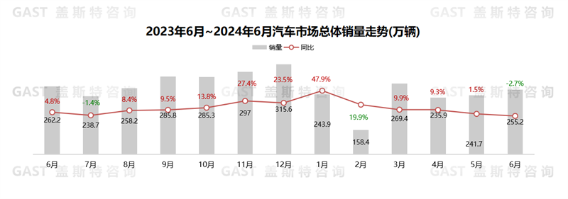 2024年上半年,中國汽車市場銷售1404.7萬輛,同比增長6.1%。得益于以舊換新和NEV下鄉(xiāng)等政策落地,疊加出口銷量保持增長態(tài)勢,上半年累計銷量創(chuàng)同期歷史新高。