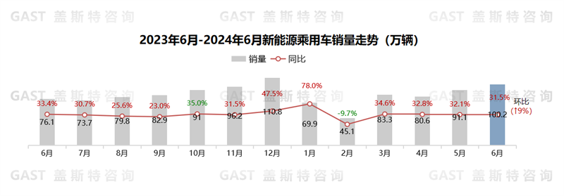 上半年,乘用車市場銷售1197.9萬輛,同比增長6.3%,其中二季度增幅回落較大。政策方面,交通運輸部等13部門發(fā)布《交通運輸大規(guī)模設備更新行動方案》、部分地區(qū)增加搖號指標;供給方面,ICE整體新品效應不佳,NEV在二季度新品推出節(jié)奏也明顯放緩。需求方面,一季度車企促銷力度大,使得部分購車需求提前釋放,導致二季度整體增速明顯放緩。