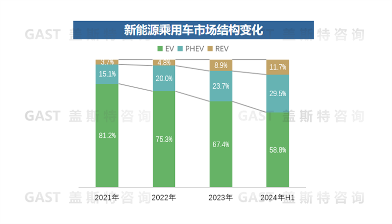 上半年,插混乘用車型累計銷量達160.49萬輛,在NEV乘用車中,份額超40%,同比增長77.9%,增幅遠超純電車型(19.5%)。