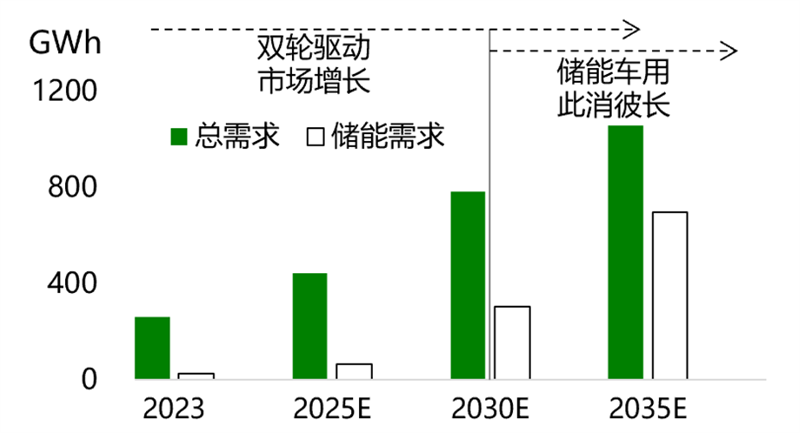 綜上,磷酸鐵鋰電池的性能特點及成本優(yōu)勢決定了其在近中期的車用/儲能市場上均有較大的應(yīng)用空間。蓋斯特對磷酸鐵鋰電池市場空間的預(yù)測見圖2。