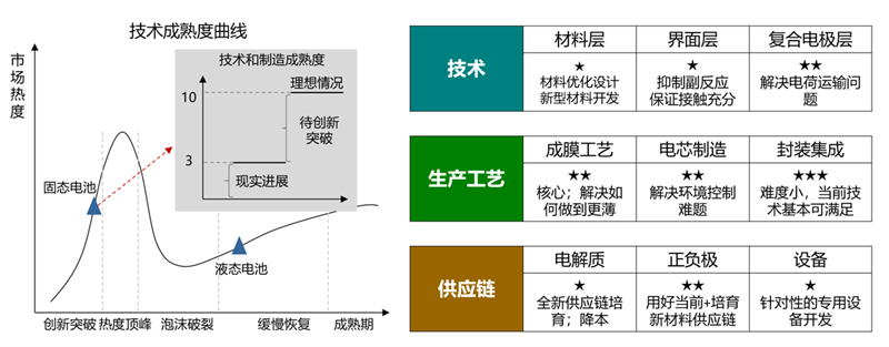 圖2固態(tài)電池技術(shù)成熟度及開發(fā)方向
