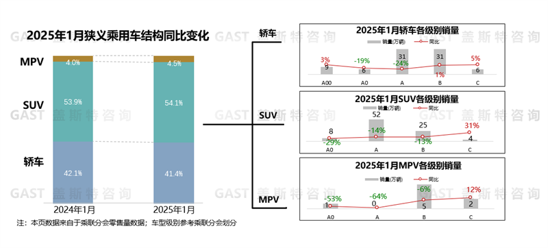 乘用車品類維度:C級市場均保持同比正增長