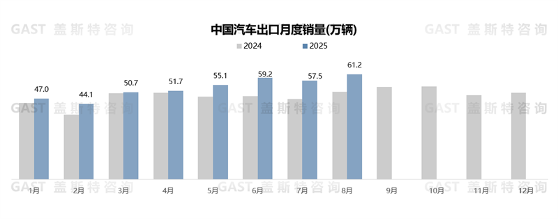 8月,汽車出口61.2萬輛,環(huán)比增長6.2%,同比增長19.6%。從動(dòng)力類型看,ICE出口量同比下滑超3%,其中對俄羅斯的出口量下滑超40%;NEV滲透率已超36%。