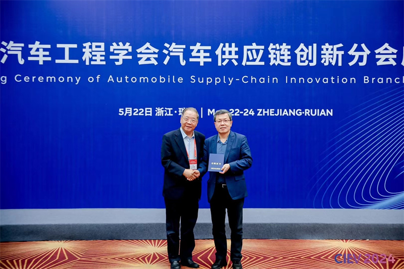 2024年5月22日,在中國汽車工程學會汽車供應鏈創(chuàng)新分會成立大會上,付總為我頒發(fā)分會顧問證書