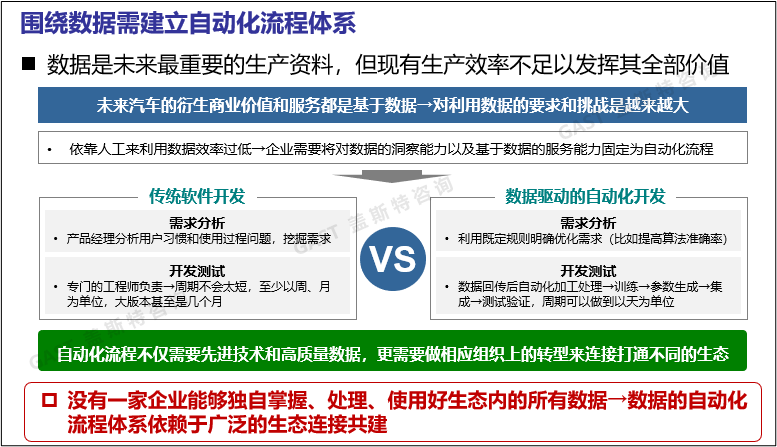 圍繞數(shù)據(jù)需建立自動化流程體系:數(shù)據(jù)是未來最重要的生產(chǎn)資料,但現(xiàn)有生產(chǎn)效率不足以發(fā)揮其全部價值,目前沒有一家企業(yè)能獨自掌握、處理、使用好生態(tài)內(nèi)的所有數(shù)據(jù),數(shù)據(jù)的自動化流程體系依賴于廣泛的生態(tài)連接和共建。