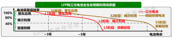 圖7 磷酸鐵鋰和三元電池全生命周期利用場景