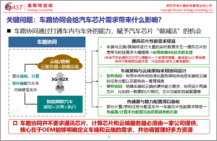 車(chē)路協(xié)同對(duì)智能網(wǎng)聯(lián)汽車(chē)芯片的影響:車(chē)路協(xié)同通過(guò)打通車(chē)內(nèi)與車(chē)外的能力,賦予汽車(chē)芯片“做減法”的機(jī)會(huì)。