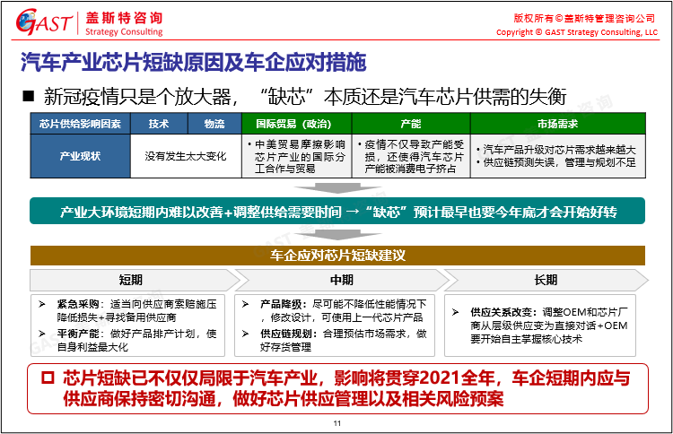 汽車(chē)產(chǎn)業(yè)芯片短缺原因及車(chē)企應(yīng)對(duì)措施:“缺芯”本質(zhì)是汽車(chē)芯片供需的失衡,新冠疫情只是個(gè)放大器,車(chē)企短期內(nèi)應(yīng)與供應(yīng)商保持密切溝通,做好芯片供應(yīng)管理以及相關(guān)風(fēng)險(xiǎn)預(yù)案。
